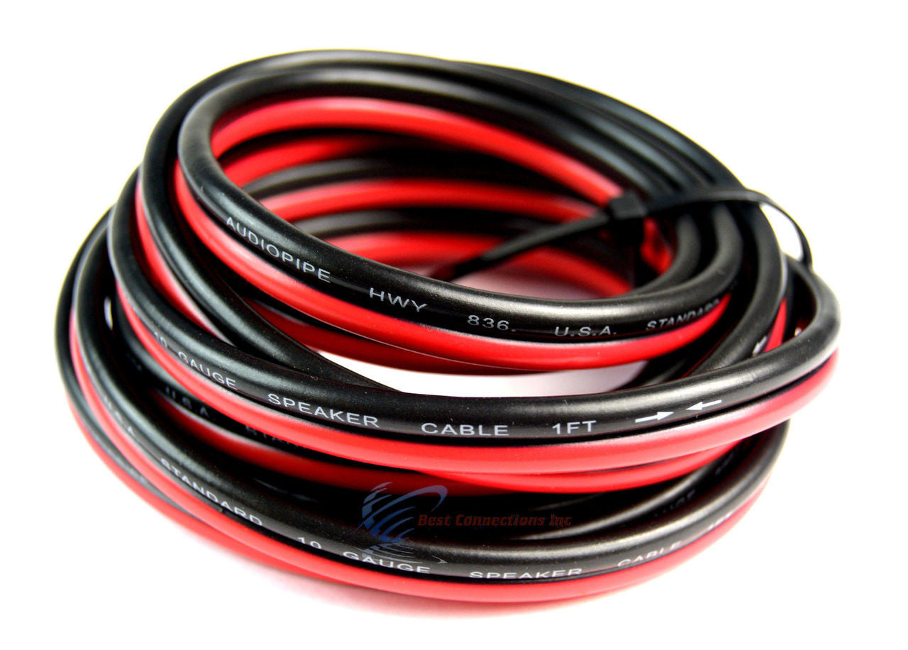 10' Feet 10 GA Gauge Red Black Stranded 2 Conductor Speaker Power Ground Wire