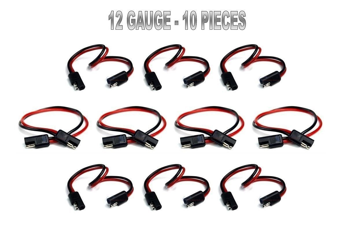 10 Pack 12 Gauge 12" Quick Disconnect Polarized Inline Power Cable Wire Harness