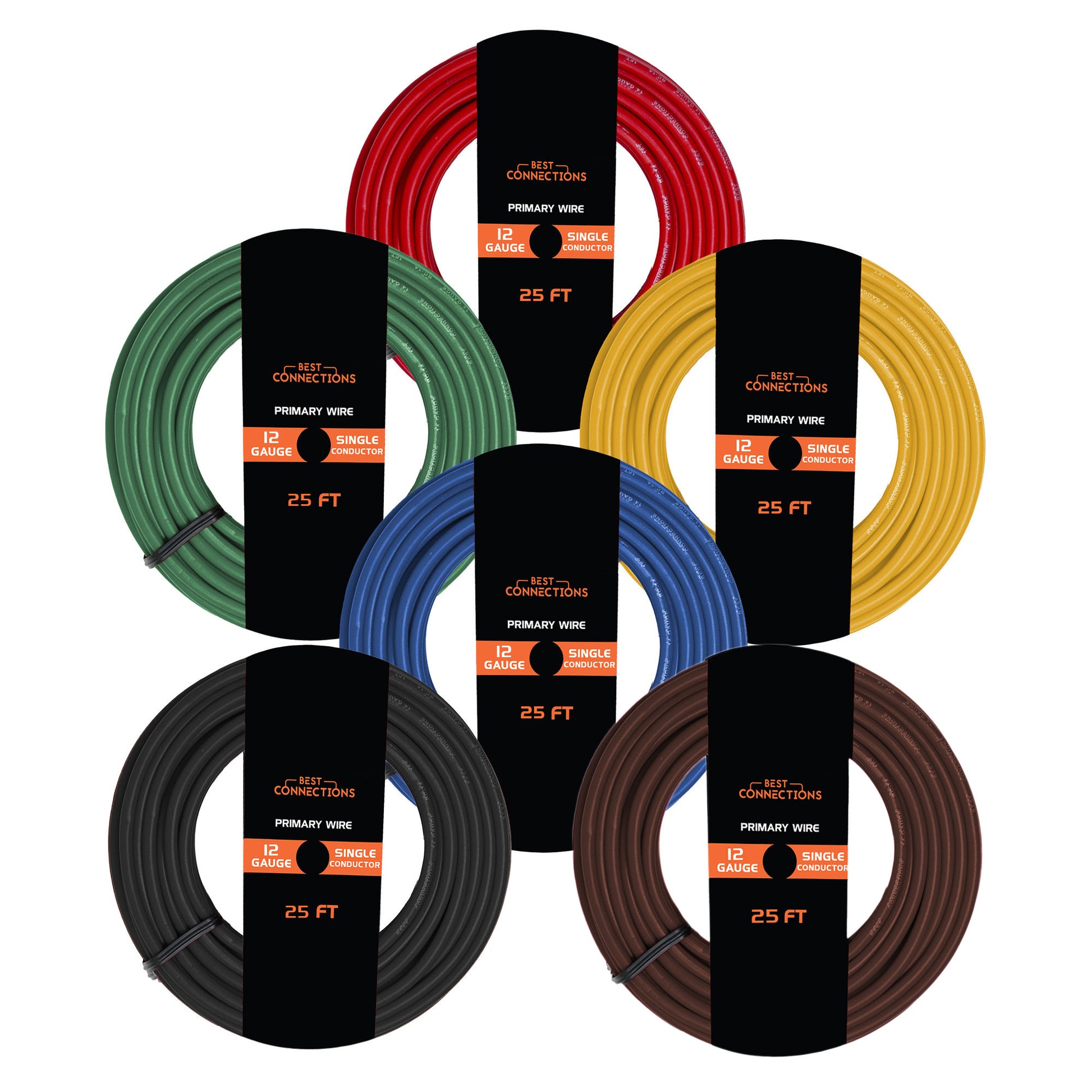 6 WIRES, 6 COLORS & 25ft PER ROLL - This Convenient Roll Offers A Generous 25ft Length Of Wire, Comprising Six Individual Wires In Six Distinct Colors. Each Wire Is A Single Conductor, Providing Flexibility For Various Applications Such As Primary, Remote, Turn On, Hook-Up, Or Ground Wire Purposes.