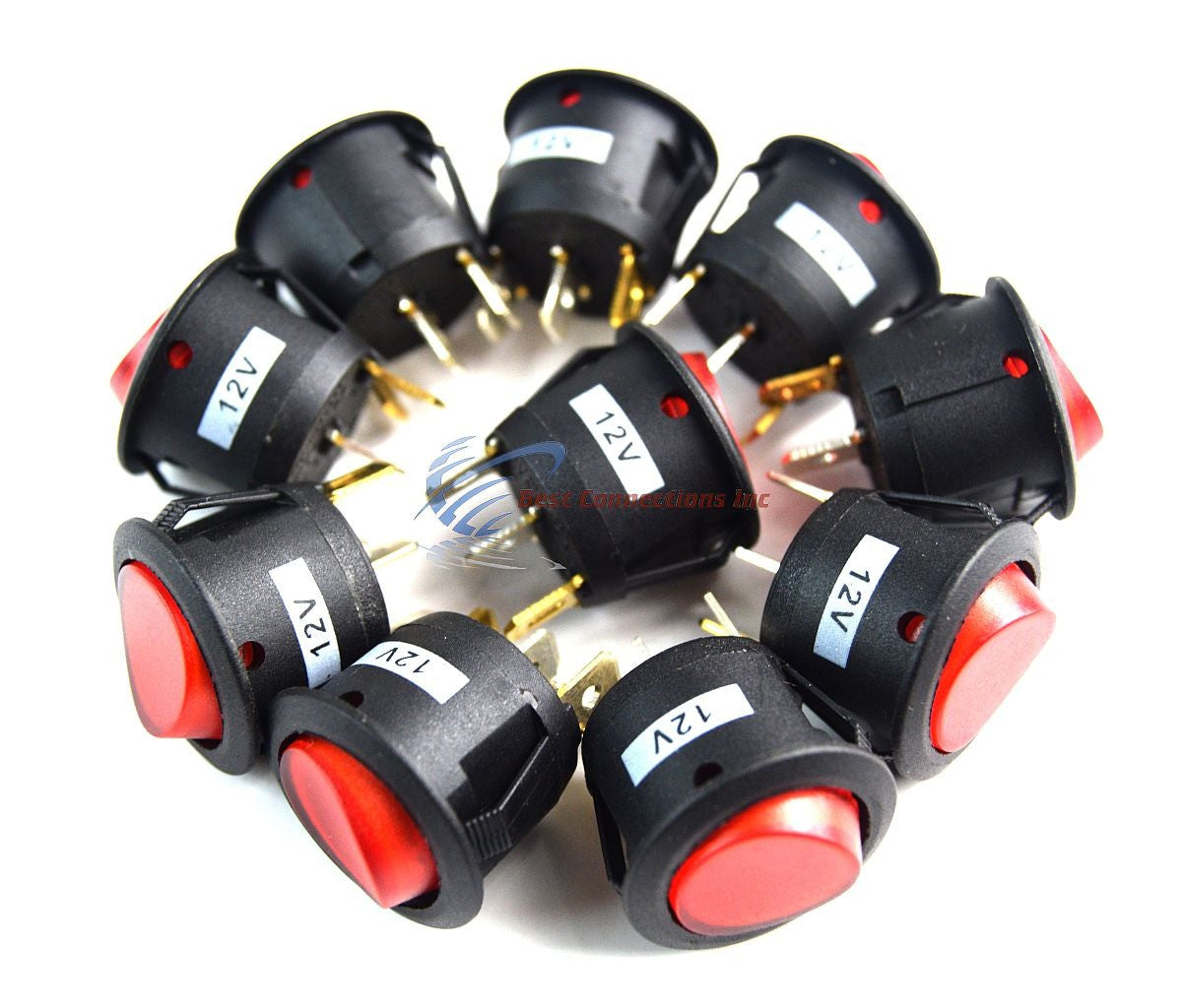 12 Volt Round 3 Prong Red LED Rocker Switch Car SPST Toggle Switch 12V 10 Pack