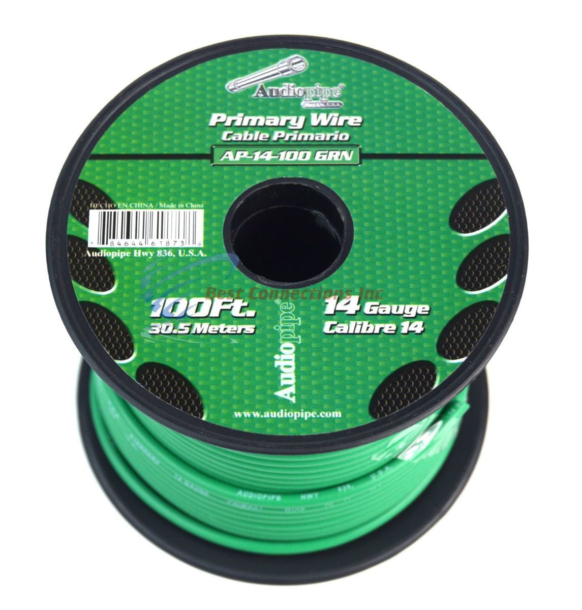 Audiopipe 14 Gauge Car Audio Primary Wire (100ft–Green)– Remote, Power/Ground Electrical Wire for Trailer, Automotive, Lighting Circuits