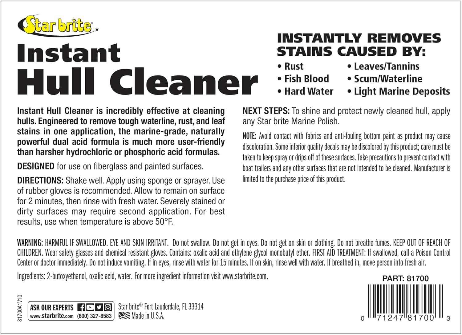 POWERFUL CLEANING ACTION - STAR BRITE Hull Cleaner removes tough stains from boat hulls, fiberglass, plastic, painted surfaces