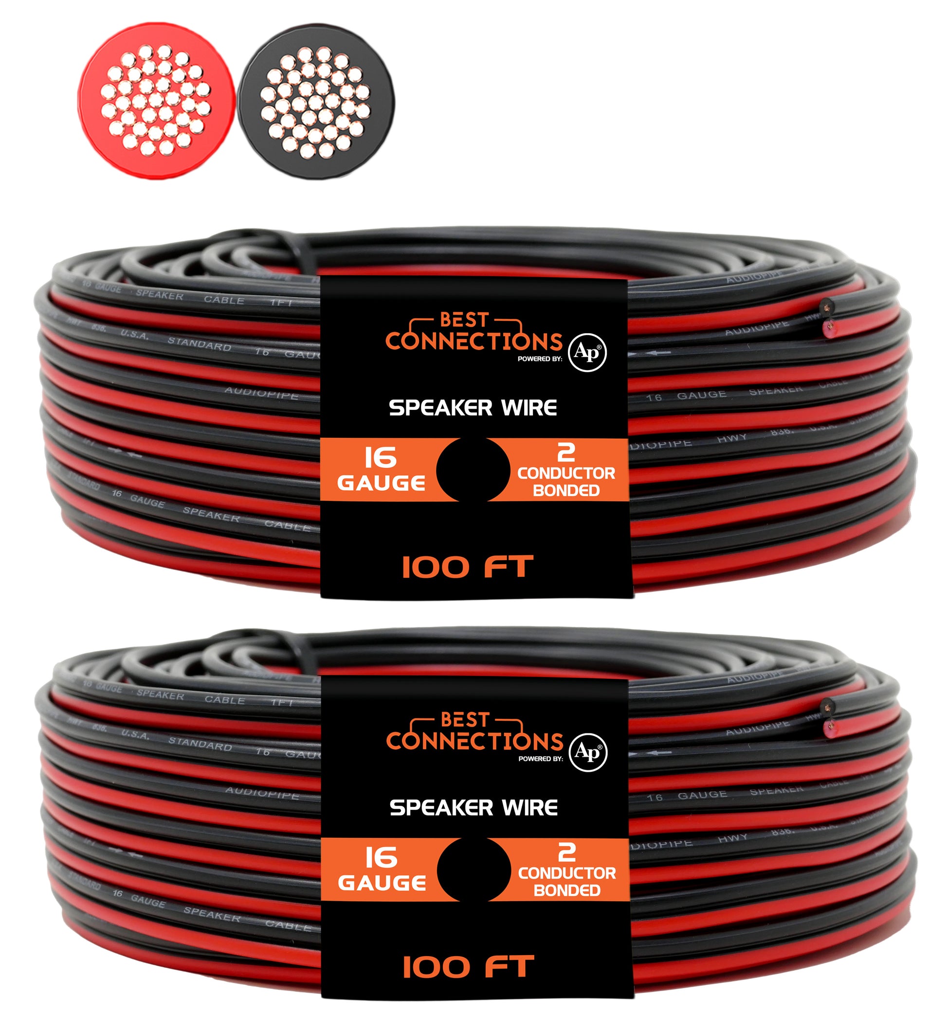 AUDIOPIPE 16 Gauge Speaker Zip Wire (2 x 100 Ft Rolls) – Primary Bonded Red & Black Speaker Cables - Durable Stranded Speakers Wire for Car Audio, Automotive, Home Theatre and Trailer Harness Wiring