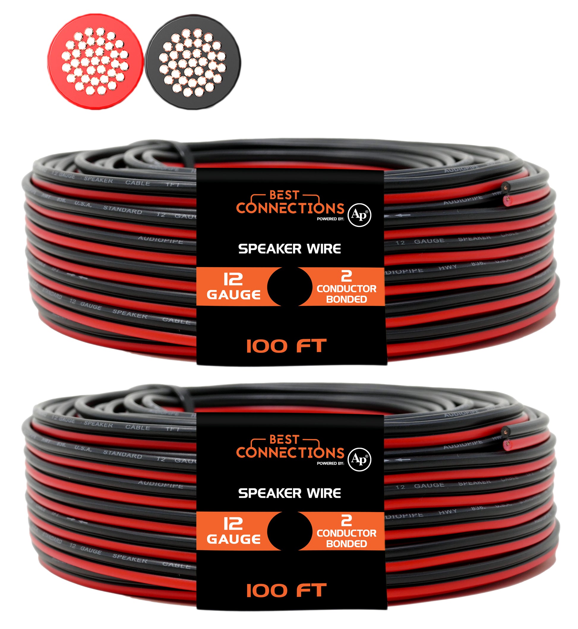 Audiopipe 2 Rolls of 12 Gauge Speaker Wire (100ft Each – Red, Black)– Durable CCA, 2 way/Bonded, Stranded/Primary, 2 Conductor Zip Wire for Car Audio, Home Stereo, Theater