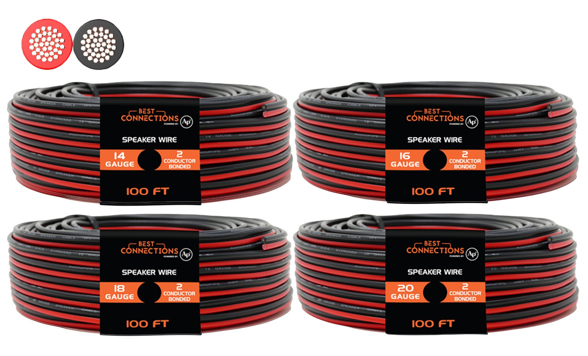 Audiopipe 20, 18, 16, 14 Gauge Speaker Zip Wires (4 Pack Bundle, 400 Feet) – Primary Bonded Red & Black Speaker Cables - Durable Stranded Speakers Wire for Car Audio, Automotive, Home Theatre and Trailer Harness Wiring