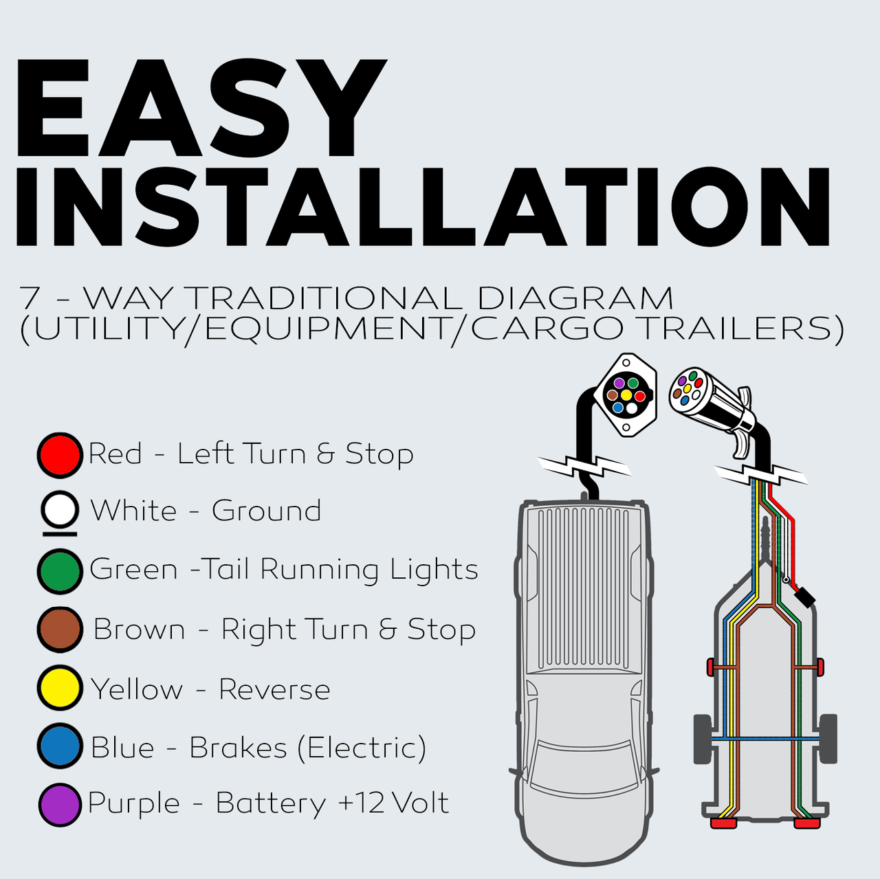 EFFORTLESS INSTALLATION WITH COLOR-CODED WIRES - Simplify Your Trailer's Electrical Setup With Our 7-Way Trailer Wire, Featuring Seven Color-Coded Wires (Blue, Green, Brown, Yellow, White). Easily Connect Your Trailer Lights, Brakes, Reverse, Turn Signals, Auxiliary Power, And Other Essential Components. The Intuitive Color-Coding System Allows For Quick Identification And Hassle-Free Installation, Even For Those With Limited Experience.