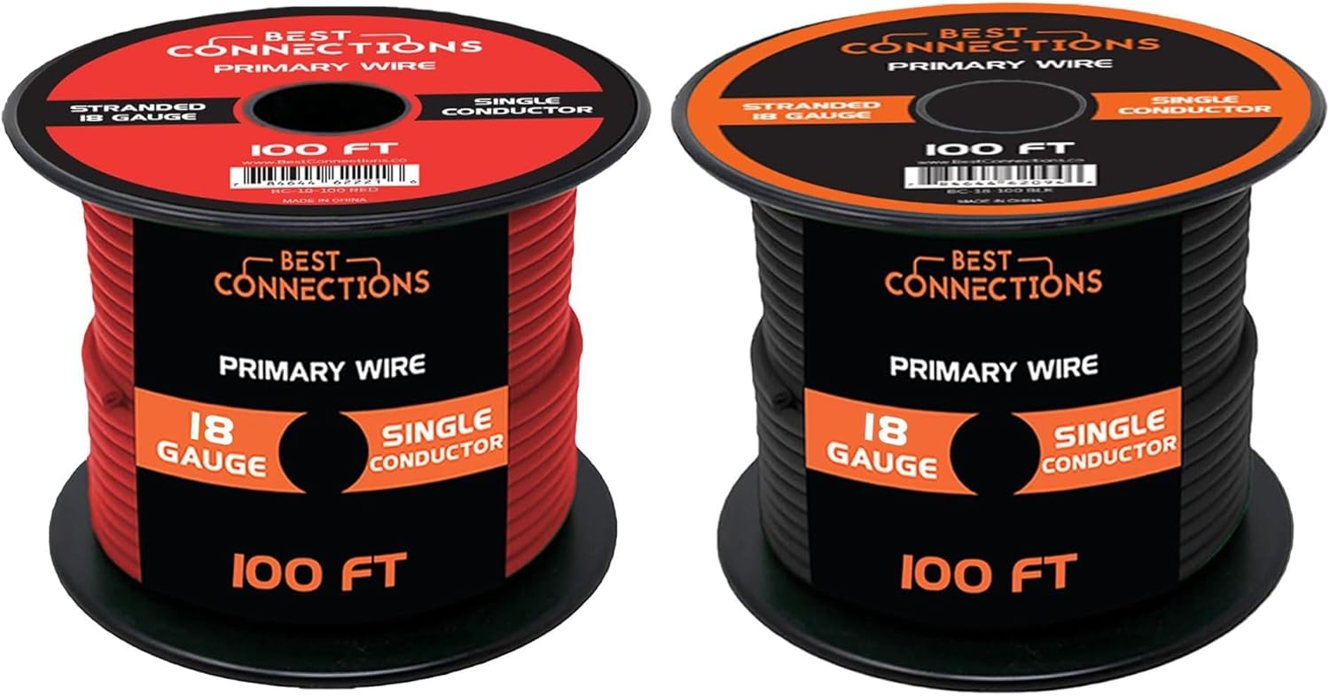 BEST CONNECTIONS 18 Gauge Automotive Primary Wire - 100ft | Ideal for Trailer, Speaker, and Lighting Circuits | Durable Primary/Remote, Power/Ground Electrical Wiring