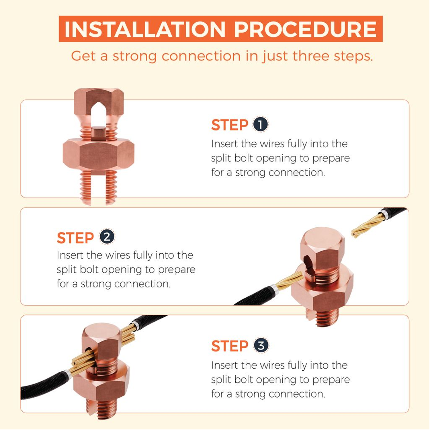BEST CONNECTIONS 10 Pieces High Strength Copper Split Bolt Connectors 4 Gauge to 8 Gauge Solid Wire