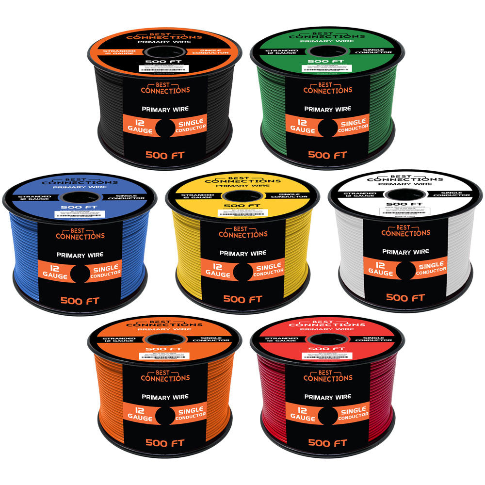 7 WIRES, 7 COLORS & 500ft PER ROLL – This convenient roll offers a generous 500ft length of wire, comprising 7 individual wires in 7 distinct colors. Each wire is a single conductor, providing flexibility for various applications such as primary, remote, turn on, hook-up, or ground wire purposes.