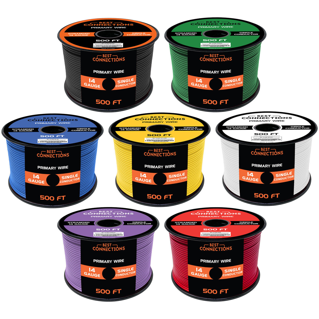 7 WIRES, 7 COLORS & 500ft PER ROLL – This convenient roll offers a generous 500ft length of wire, comprising 7 individual wires in 7 distinct colors. Each wire is a single conductor, providing flexibility for various applications such as primary, remote, turn on, hook-up, or ground wire purposes.