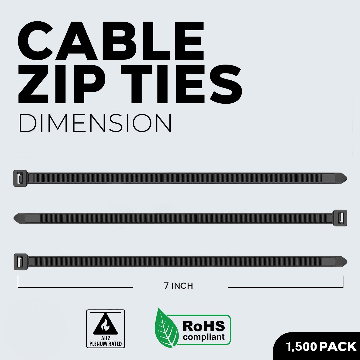 BEST CONNECTIONS Black Cable Ties – 1,500 Pcs Cable Zip Ties 7 Inch – Multi-Purpose Self-Locking Nylon Wire Ties with 50 Lbs Tensile Strength – Cable Management Ties for Outdoor & Indoor