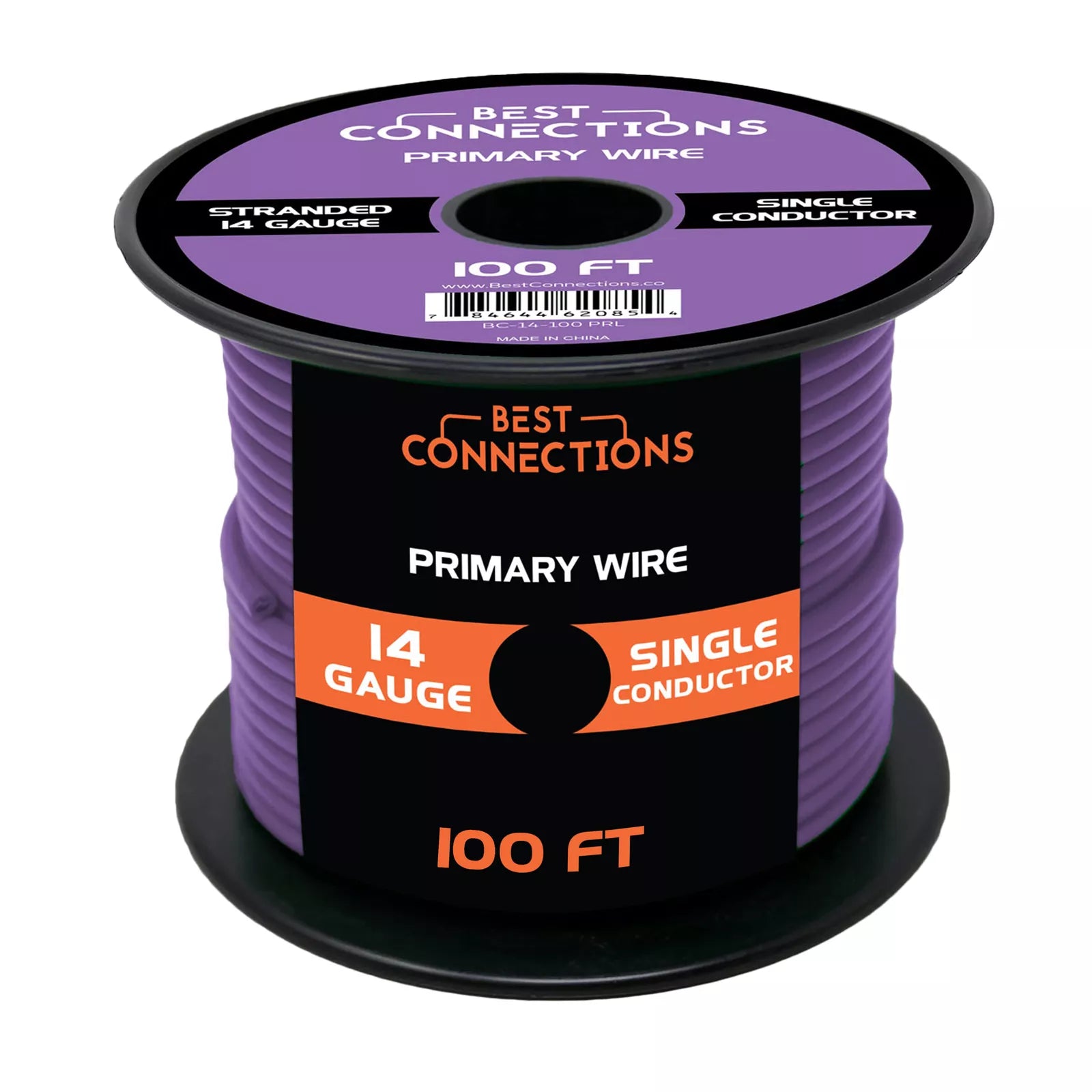 Audiopipe 14 Gauge Car Audio Primary Wire (100ft–Purple)– Remote, Power/Ground Electrical Wire for Trailer, Automotive, Lighting Circuits