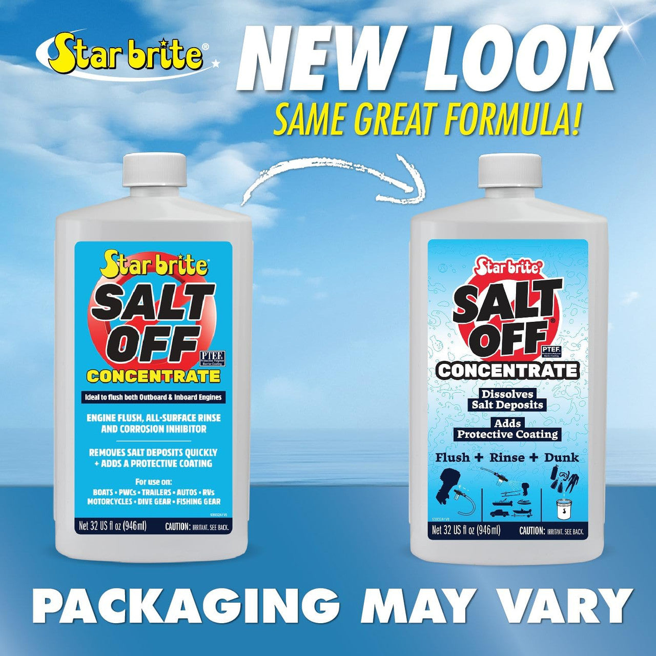 ULTIMATE SALT ELIMINATION: STAR BRITE Salt Off Concentrate effectively removes salt deposits from all surfaces, including fiberglass, vinyl, painted surfaces, metal, chrome magnesium, plastic, wood, glass, and rubber
